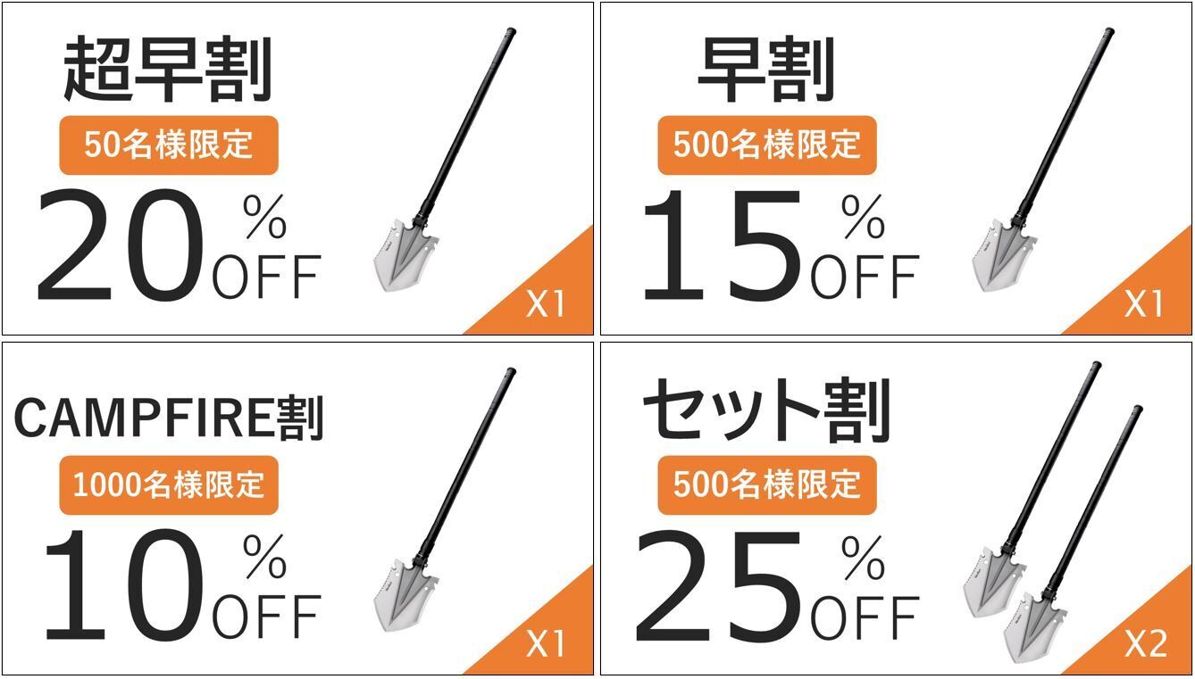 クラウドファンディングの性質上、以上の注意点につきましてあらかじめご理解とご了承いただいた上でご支援くださいますよう、よろしくお願い申し上げます。最後に、「NexTool多機能シャベル」を手に取ったみなさまに喜んでもらえるよう、 チームメンバー一同心を込めて対応していきますので、応援よろしくお願い致します。