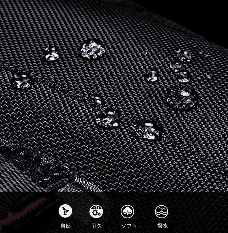 バッグ表面は丈夫な高密度オックスフォード撥水生地で、雨がカバンの中まで入り込むことはなく、雨による水滴や汚れも寄せ付けません。また、乾湿分離ポケットも増設し、簡単に乾湿衣類を分けます。