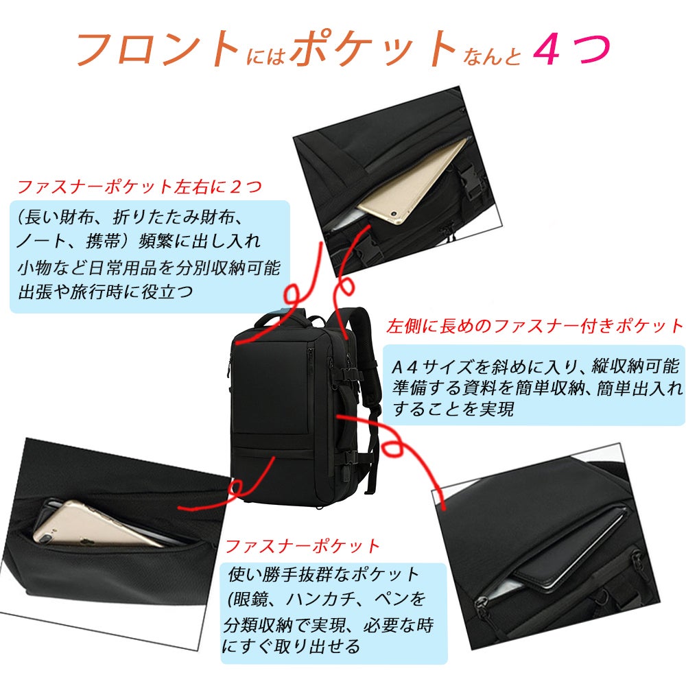 ☆フロントポケット、それぞれの入れ替えがあり、頻繁に出し入れ小物(長い財布、ノート、携帯)など日常用品を分けて収納でき、出張や旅行時に役立ちます。