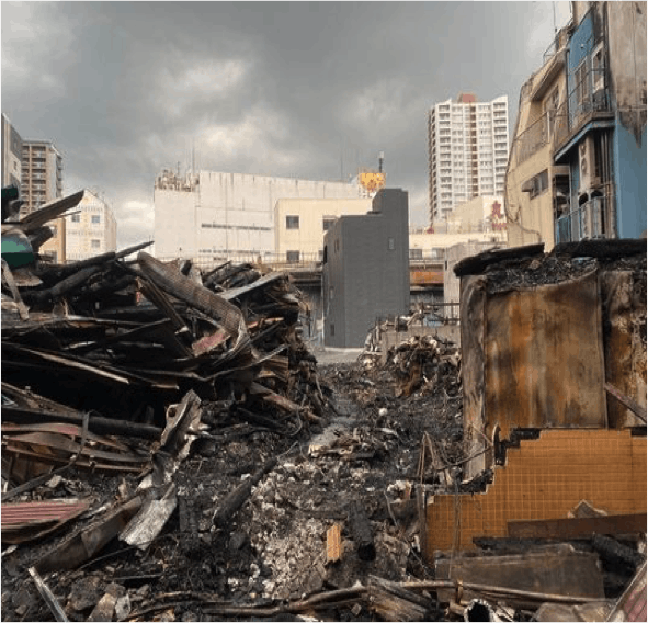 2022年4月19日、福岡県・旦過市場周辺で起こった大規模火災により2000㎡・40店舗以上が焼失しました。