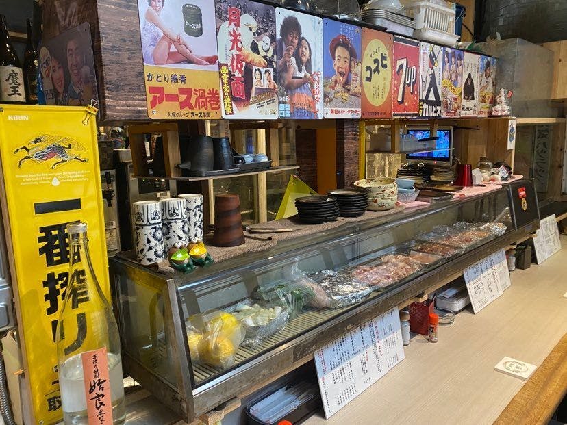 店内は昭和の雰囲気を残しながら、壁には火災前のお店の写真やお客さんたちの写真が飾られ、昔を偲びながらお食事やお酒をお楽しみいただけます。