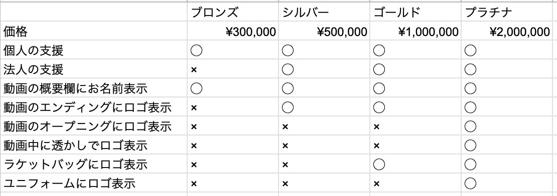 ・ロゴサイズはプラチナスポンサーよりも小さくなる