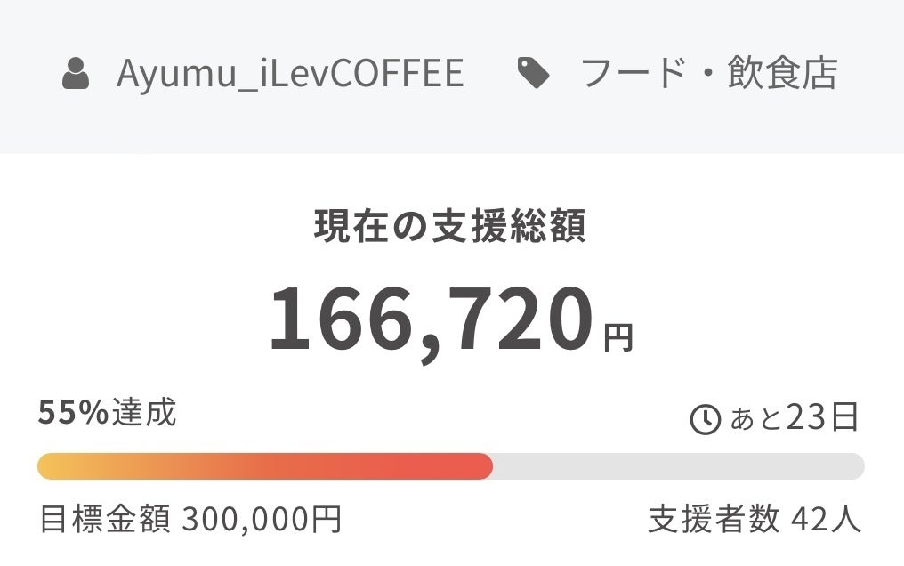 なんと現在までで支援金額55%に到達することができました!(10月8日11時30分時点)