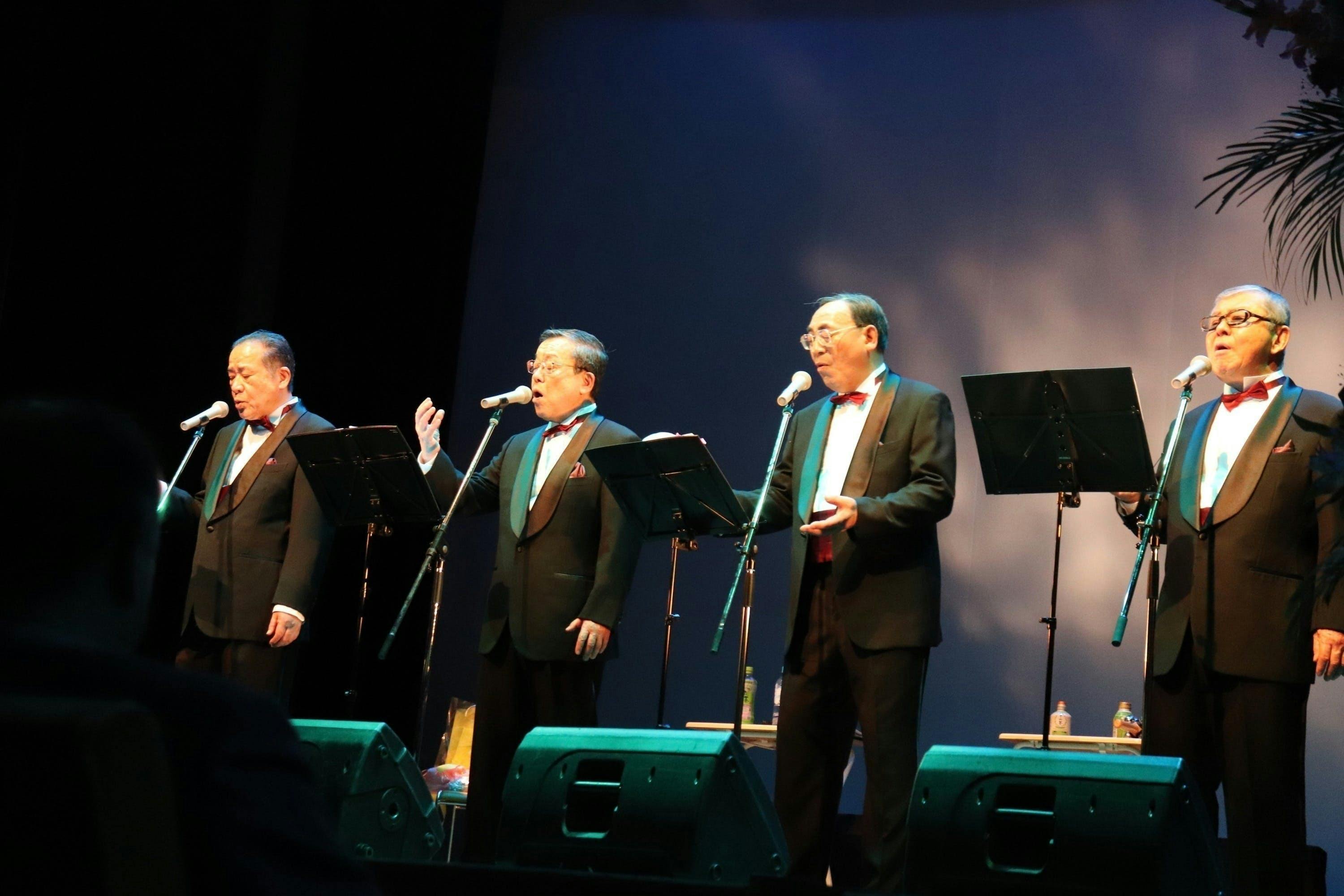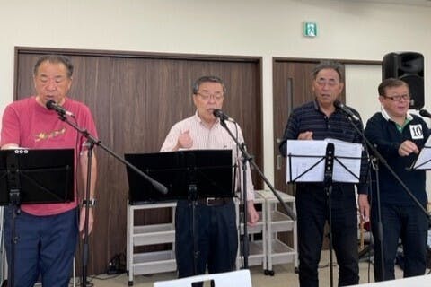 メンバーは秋田市在住の古希を迎えた男性4人。老人施設などへの慰問活動のほか、さまざまな場所で出前歌声喫茶を開催し、歌を通じて笑顔と元気を届けております。