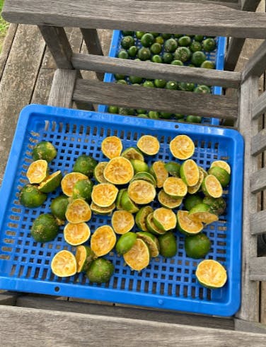 浜松湖北高校でも、今年とった摘果みかんを未利用資源として有効活用できないかと考えていたそうです。私たちのチームと全く同じ考えで、またこちらもフードロス削減につながりますので、原料とさせていただきました。
