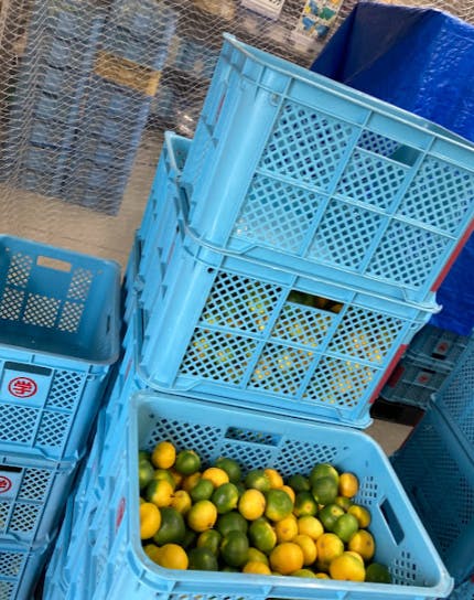 たくさんの地元農家さんから、青みかんを集めようと杏林堂の店舗を活用した『青みかん交換会』を実施しました。摘果した青みかんをお持ちいただければ、杏林堂の商品券と交換します!と銘打って開催!(0.5円/kg が相場と言われるところを、200円/kg 相当で交換)想定したよりも少ないですが、青々としたみかんが集まりました。