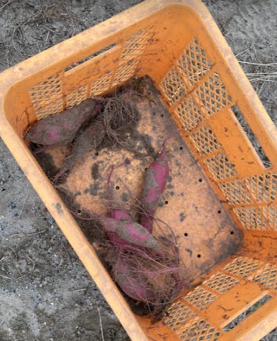 干し芋用のさつまいもを収穫していますが、サイズが合わないお芋は、捨ててしまうことがある とのことでしたので、