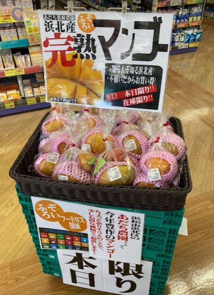浜北区の足立フルーツさんのマンゴーが今年豊作で販売先を探しているとのことでしたので、浜松市の杏林堂2店舗で販売協力致しました。