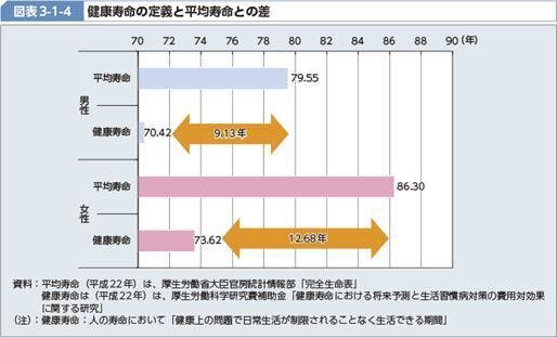 長寿国と言われる日本ですが、健康寿命は約10年短く、この10年は健康でない状態をさします。