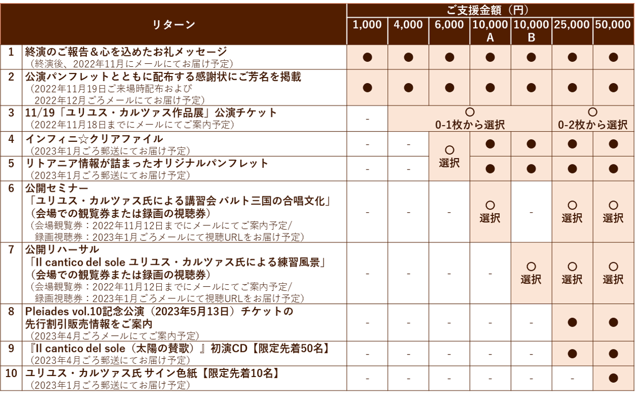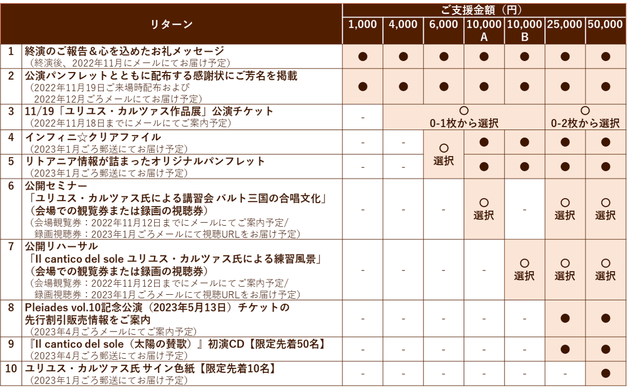 日頃からインフィニ☆を応援して下さる方から今回はじめて知ってくださった方まで、そしてリトアニアに興味のある方、合唱が好きな方、地域で活動する団体を応援したい方など、多くの皆様に、さまざまな角度から楽しんでいただけるものをご用意しています。