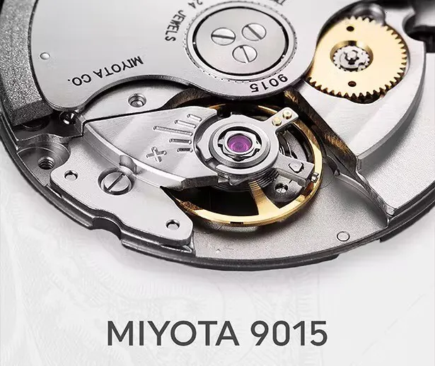 時計の心臓部に当たるムーブメントには、絶対的な安心感がある日本製のミヨタ9015を搭載。