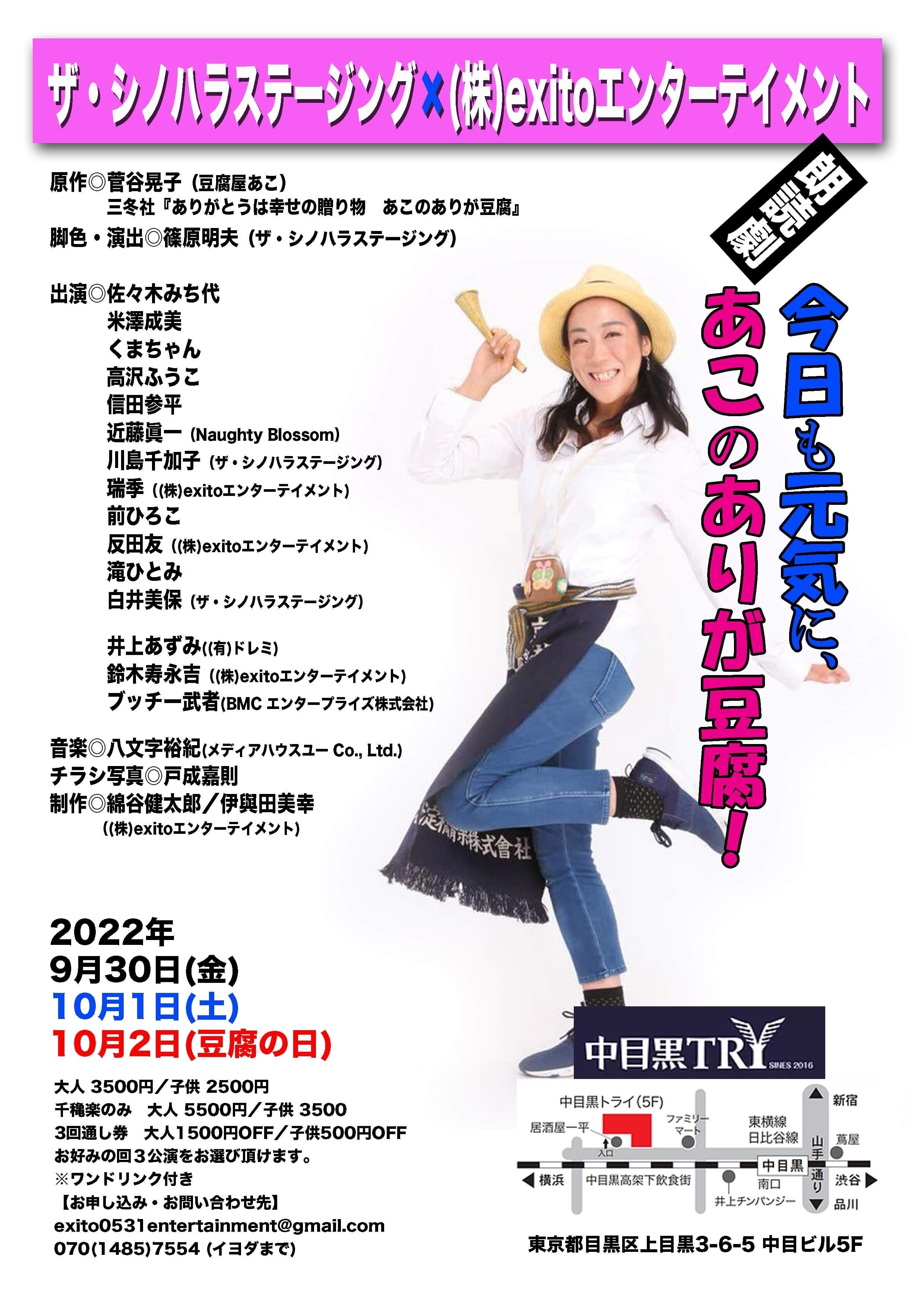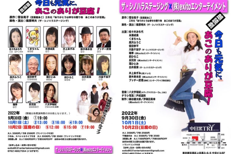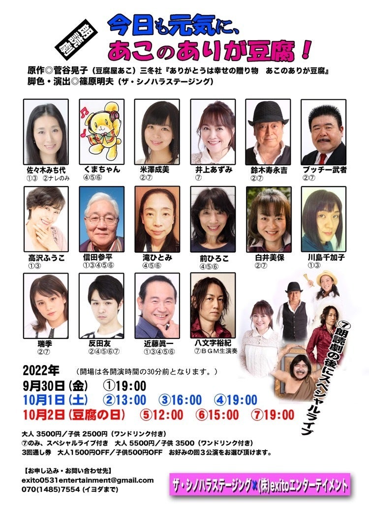 昨年、コロナ禍でリモート公演。今年こそはリアルで皆様にお楽しみ頂きたくのために、超豪華Specialゲストをお招きして「あこのありが豆腐」を届けしたく準備をしております