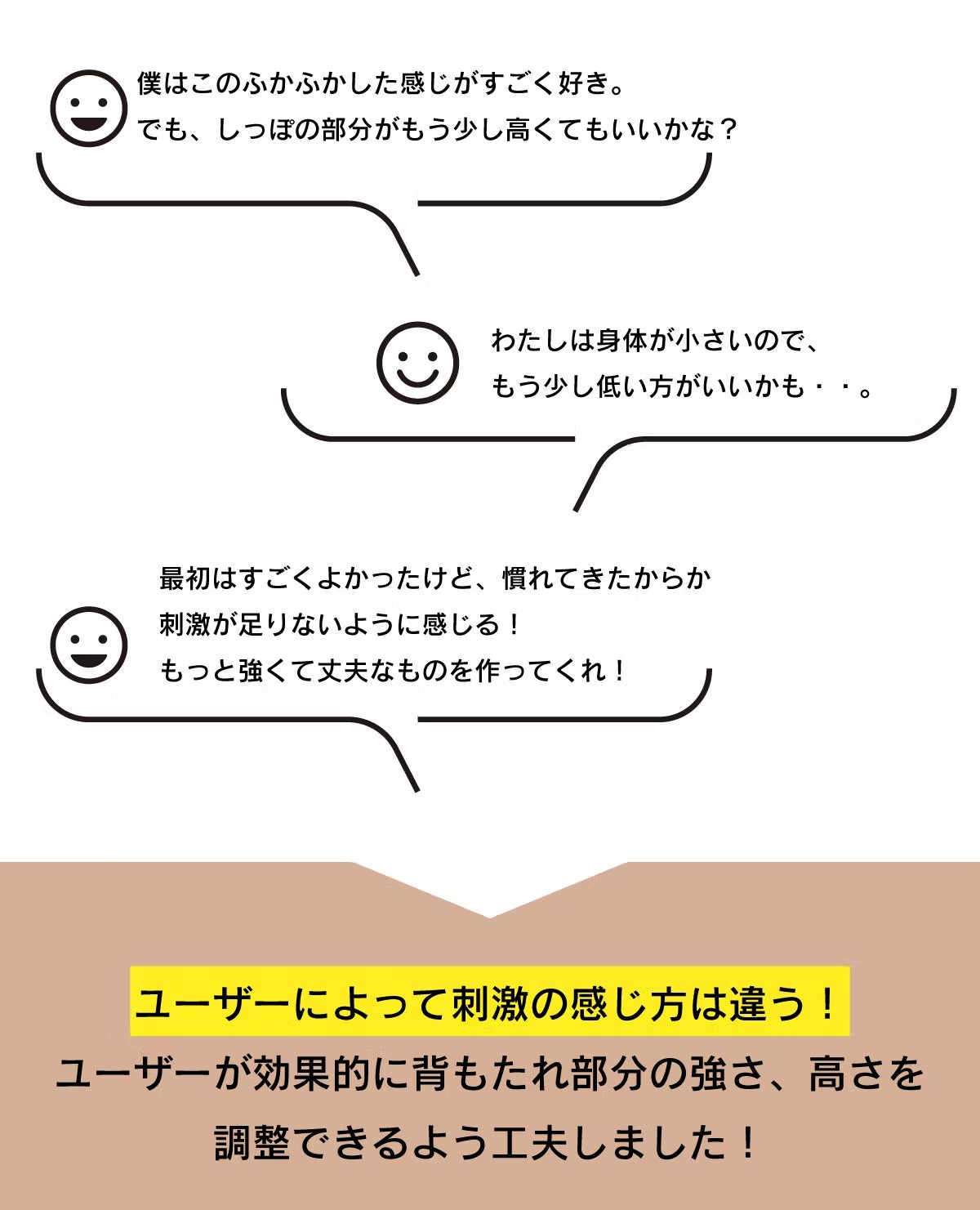より多くの方に合う強さと高さをカバーするため、3段階で調整ができる構造を採用。