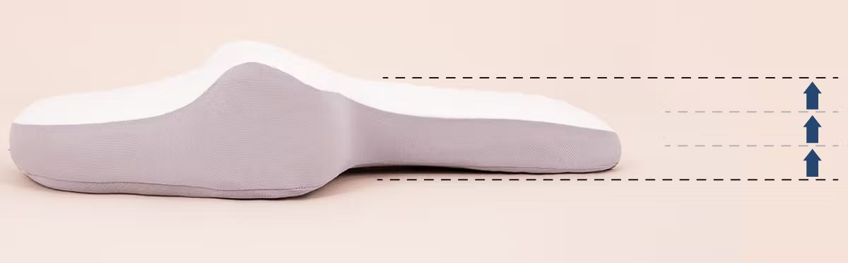 夜眠るたびに、猫背、巻き肩姿勢で収縮した胸、肩の筋肉を伸ばしやすくし、背骨から頭を支える理想の姿勢へ導きます。