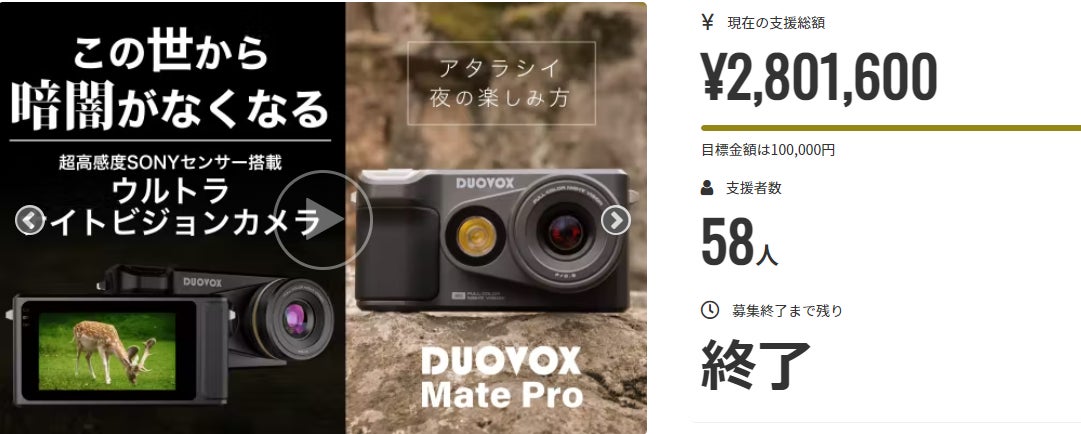 たくさんの応援をいただき、おかげさまで支援総額は2,801,600 円となりました!