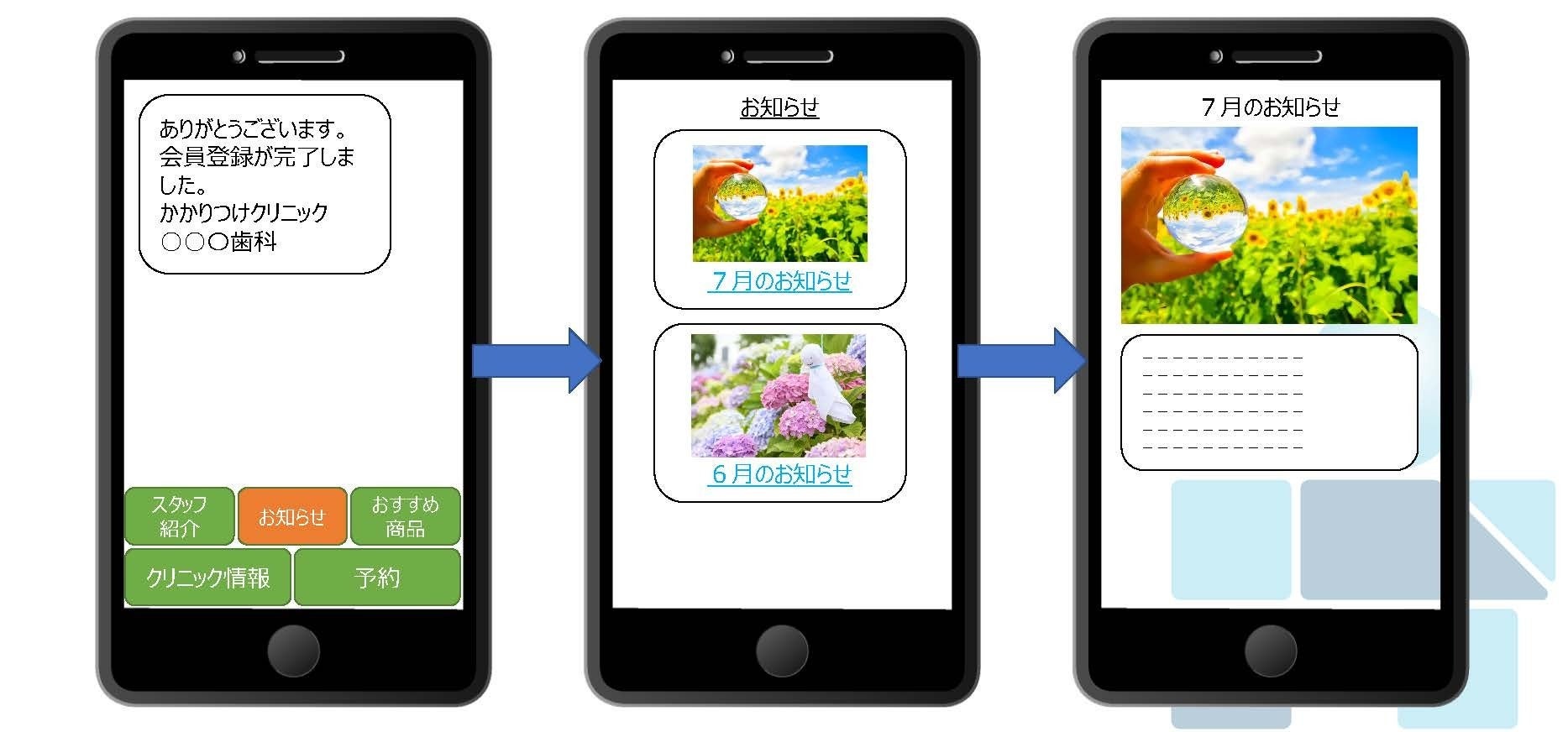 クリニック側から「お知らせ」がある場合に知らせることができます。