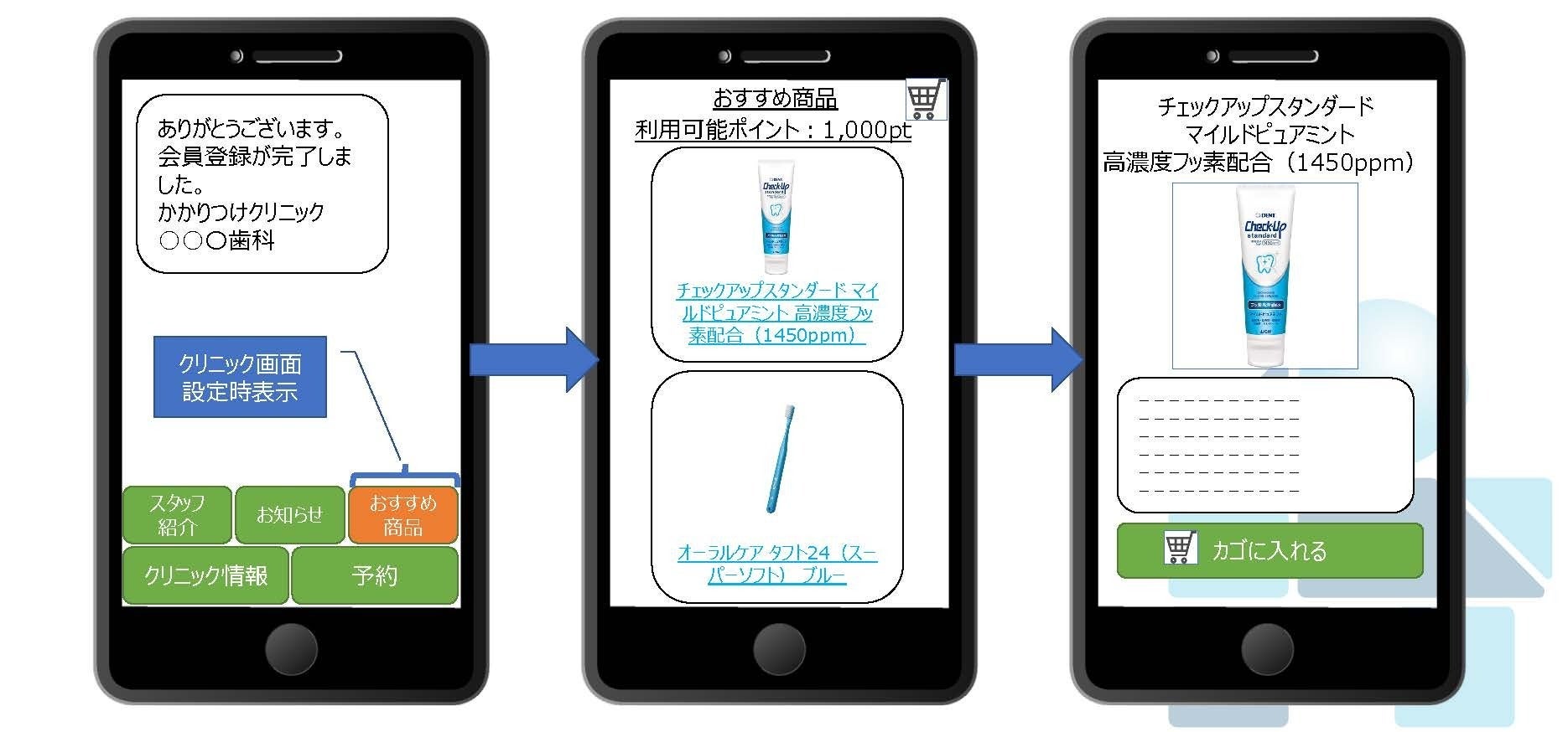 歯科では歯ブラシや歯磨き粉、美容系サロンはスキンケアやヘアケア製品、ペット系はペットフードなどを買いに行かなくてもサイト上で簡単に購入できます。