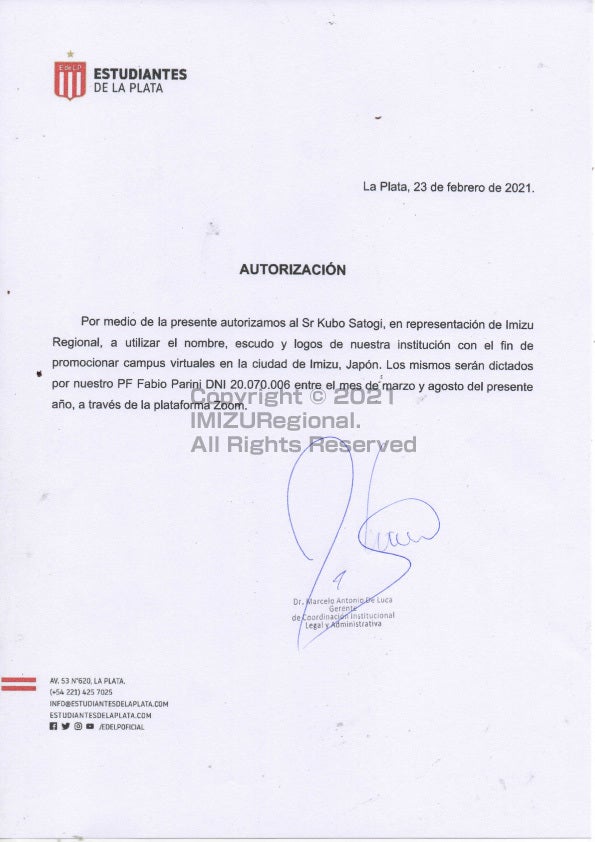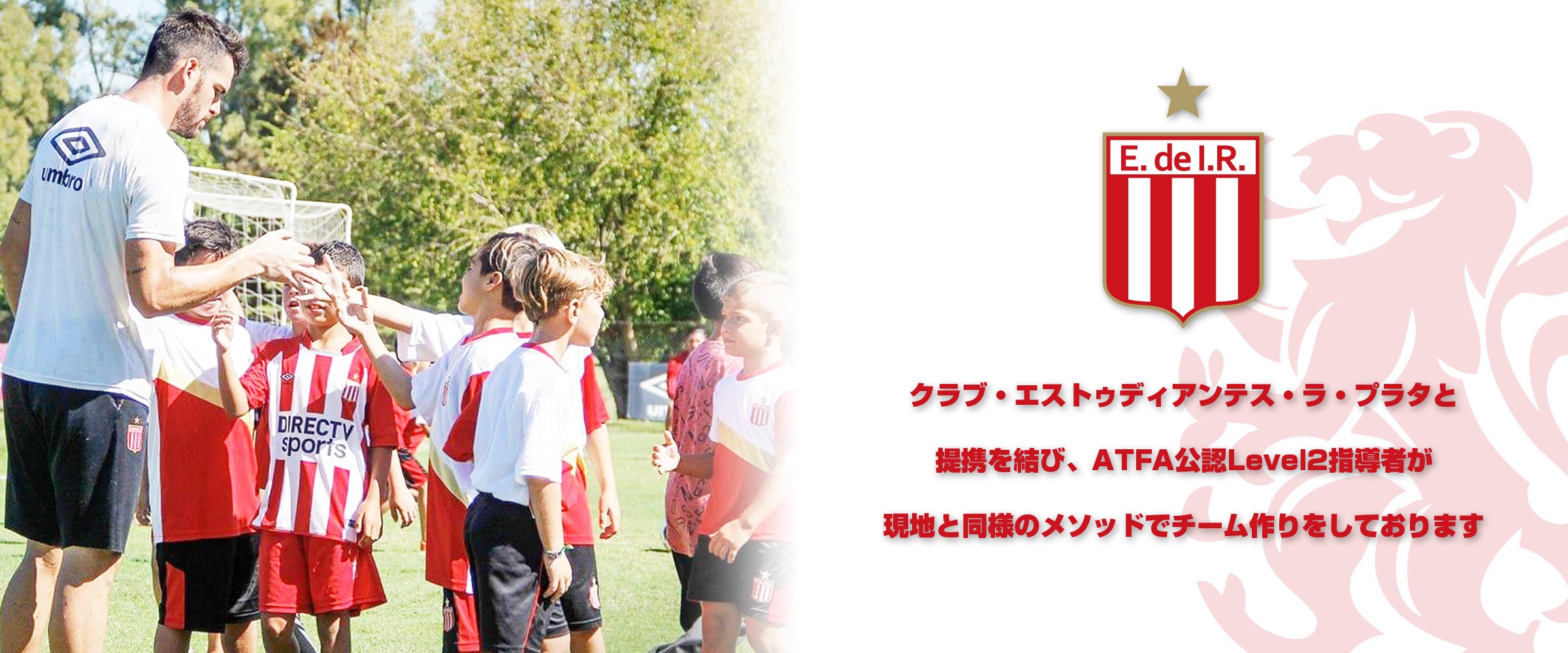 このスクール&クラブチームは、アルゼンチンのプロクラブ≪エストゥディアンテス・デ・ラ・プラタ≫のクラブオーナー・J.S.ベロン氏の許可を得て提携を結ばさせていただき、【日本に居ながら世界スタンダードを学ぶ】をコンセプトに日々子どもたちとの成長をサポートしております。