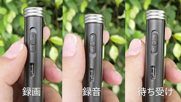 本体の左側のスライドスイッチで簡単に待ち受け/録音/録画を切り替えることができます。スイッチを録音/録画モードにスライドすると、「Q95」は自動的に録音/録画を開始します。スイッチを待ち受けモードにすると「Q95」は録音/録画した内容を自動保存して待機します。
