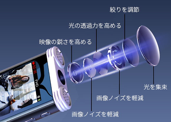 「Q95」は硬度が高く、壊れにくい6層の高感度レンズを搭載しており、カメラ内で電子的に光を増幅させ、映像をより鮮やかに、より鮮明に記録することができます。