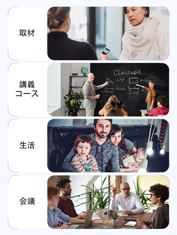 会議:ハイクオリティな音質でみんなのすばらしいアイディアを残さず記録します。