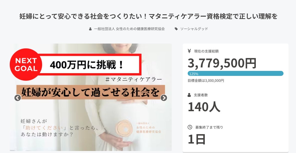 マタニティケアラーの取り組みを最後まで一人でも多くの方に知っていただけるよう、私たちスタッフも最後までクラウドファンディング拡散に努めたいと思います。