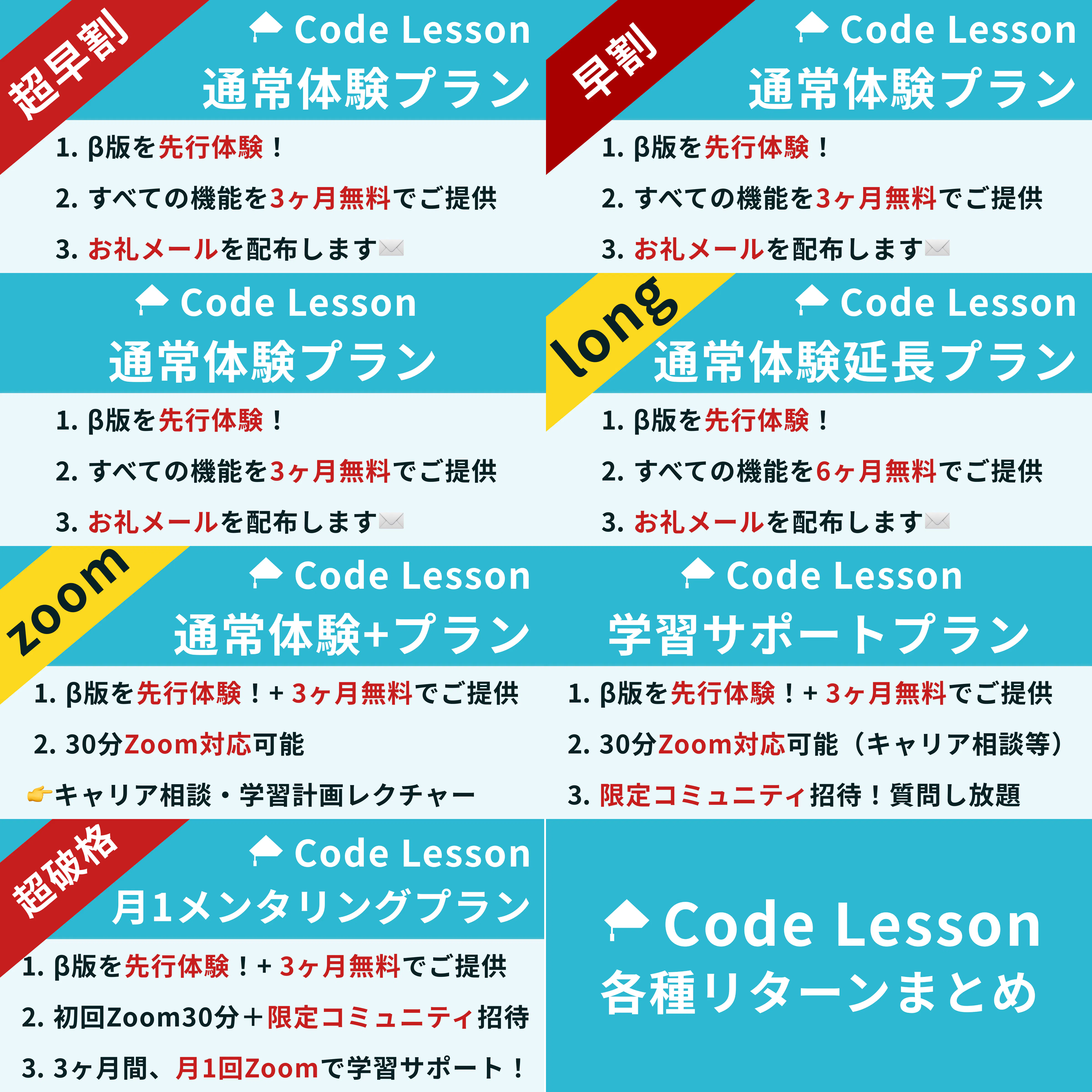 ②CodeLessonの正式版リリース後、すべての機能を6ヶ月無料でご提供します。