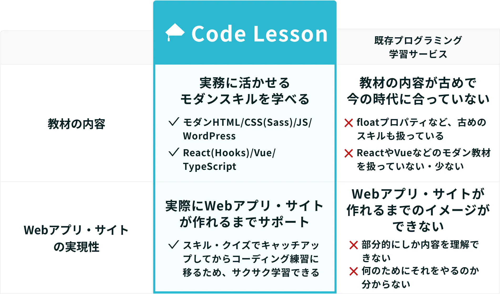 ◆既存プログラミング学習サービスとの比較