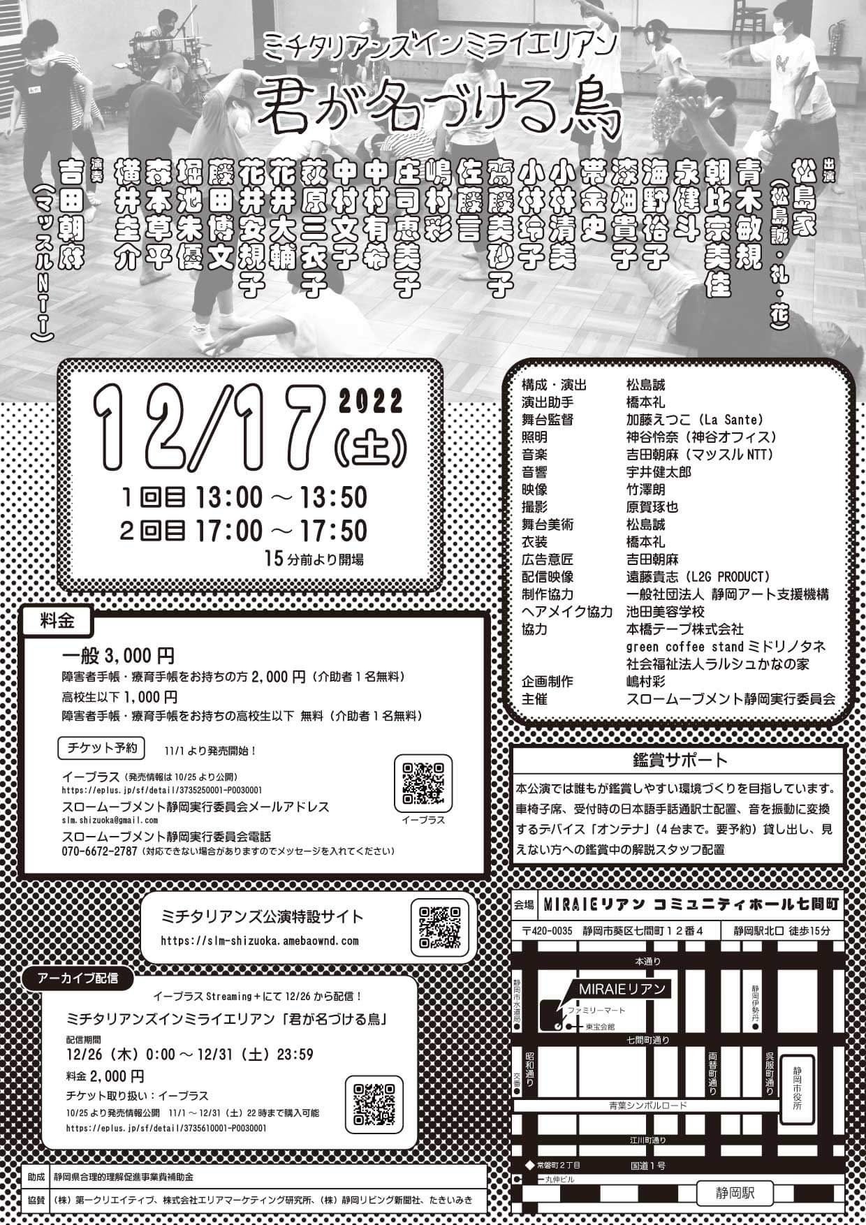 初めてこのプロジェクトをご覧いただいている皆様、はじめまして。ご支援くださった皆様ありがとうございます!スロームーブメント静岡実行委員会 嶋村彩です。12月の公演に向けて準備が進んでいます。昨晩は会場のミライエリアンにて、実際に音響や照明、映像を使いその中でリハーサルを遂行しました。こういったリハーサルは本番の3日以内にできれば良い方で、前日にようやくできることの方が多く、ひとえに皆さまのご支援が着々と集まりつつあることで臆することなく臨むことができました。誠にありがとうございます!当日の様子をブログにて投稿しましたので、お時間のあるときにぜひご覧いただきたく存じます。https://ameblo.jp/slmshizuoka/entry-12773564830.html引き続き応援よろしくお願いします。