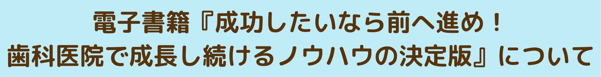 ぜひ、一人でも多くの方に電子書籍『成功したいなら前へ進め!歯科医院で成長し続けるノウハウの決定版』を読んでいただきたいと思っています。