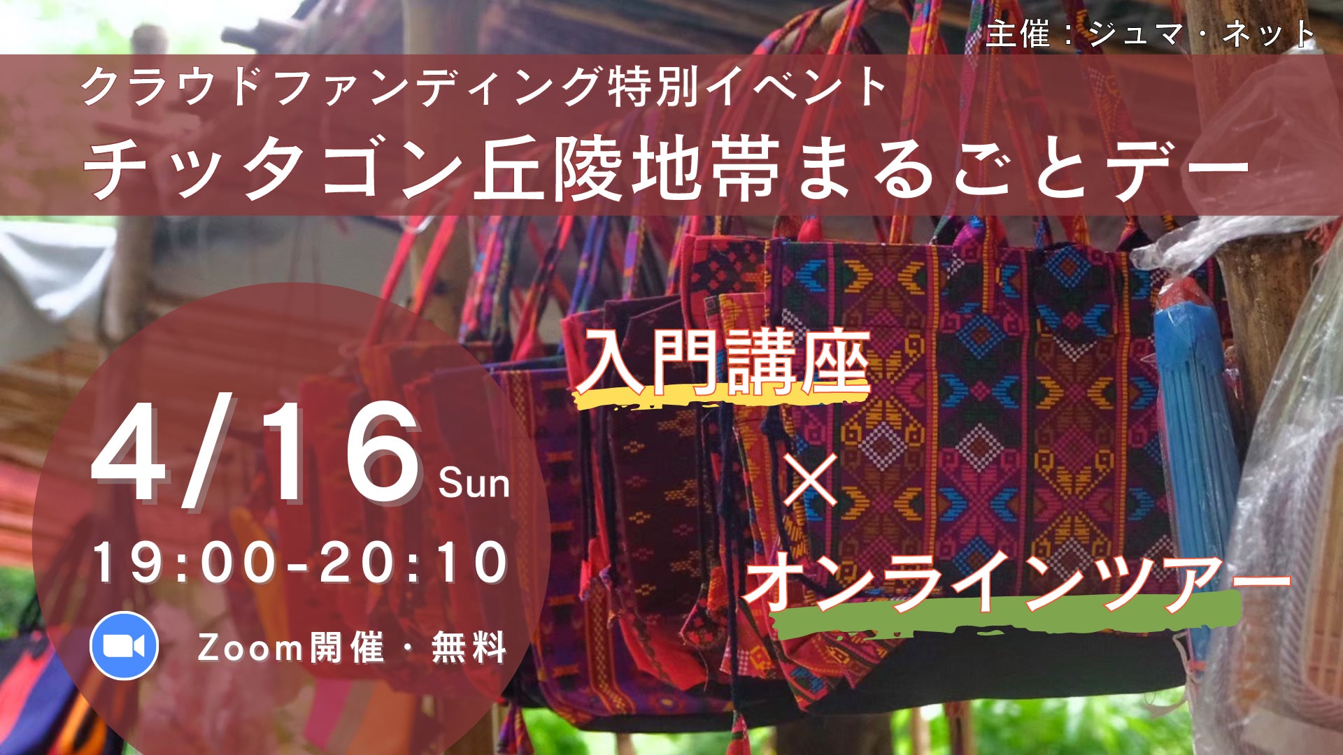 チッタゴン丘陵地帯を初めて知る方から、今の現地の状況やジュマ・ネットの活動をもっと詳しく知りたいという方まで楽しめるオンラインイベントを開催します!