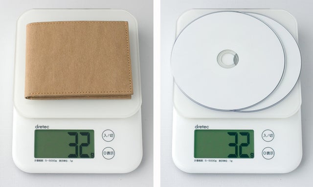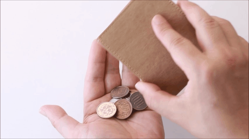存在を忘れてしまうほどの驚きの軽さは、小銭の入る二つ折り財布において史上最軽量クラスです。