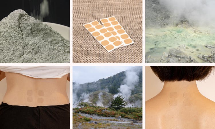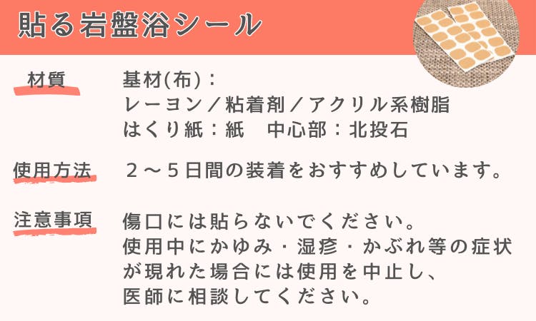 「貼る岩盤浴シール」とは、体のお好きな場所に貼っていただくだけで、シールに配合された北投石の成分が貼付箇所をじんわりとあたため、岩盤浴のような効果を感じていただける製品です。