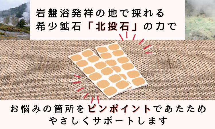 シールタイプですので、お悩みを抱えている場所にピンポイントで北投石の効果を届けます。
