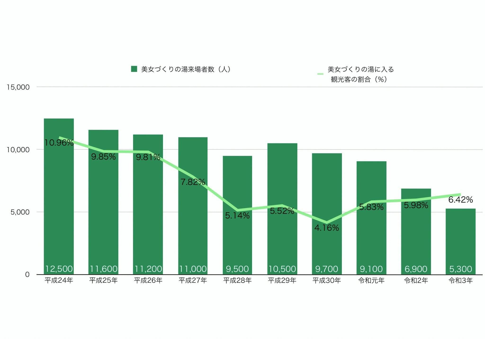 寸又峡温泉街にある美女づくりの湯は、ピーク時(平成2年)には年間2万人近くのお客さまに来ていただいていましたが、現在は年間約5000人程度と大幅に減少してしまいました。