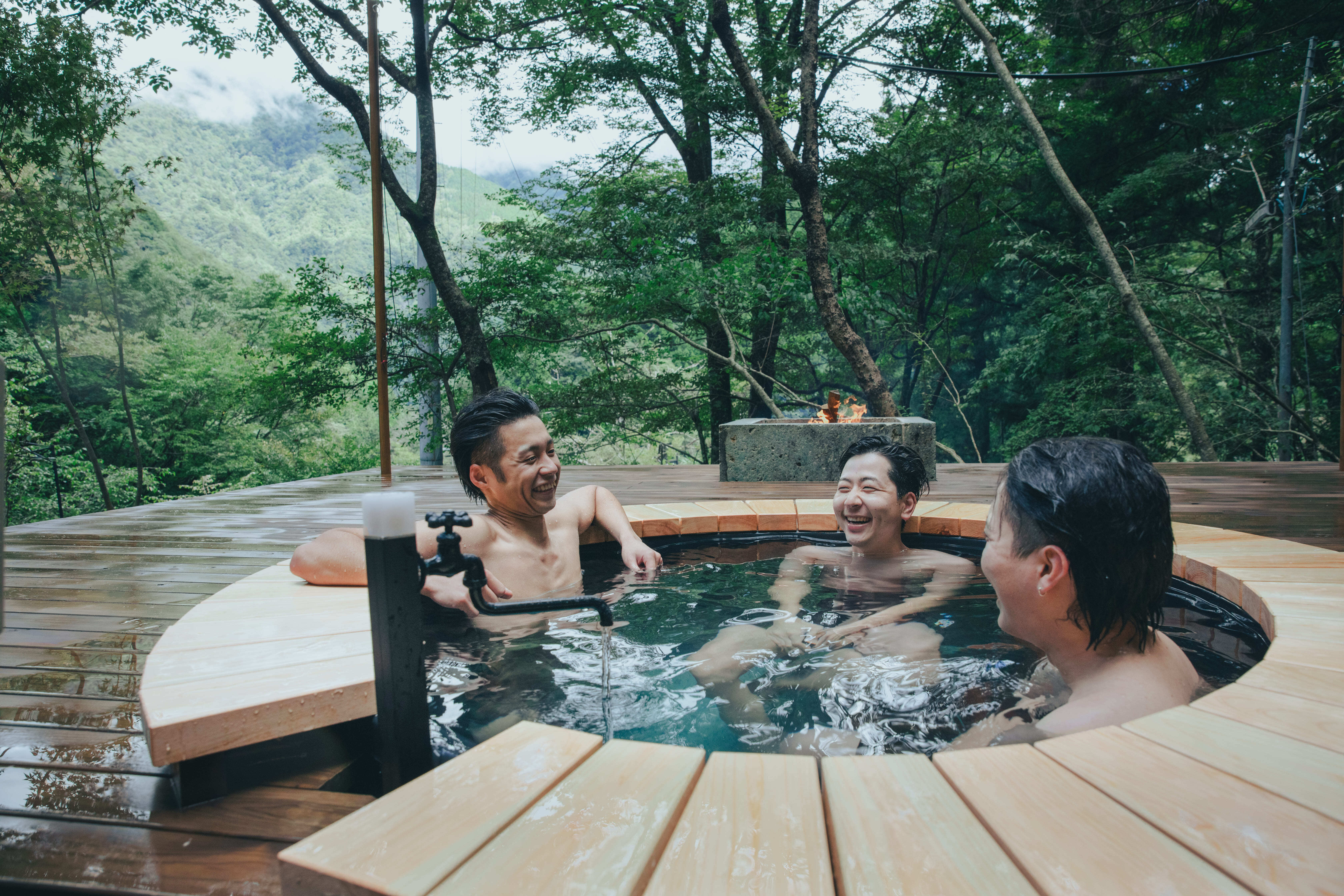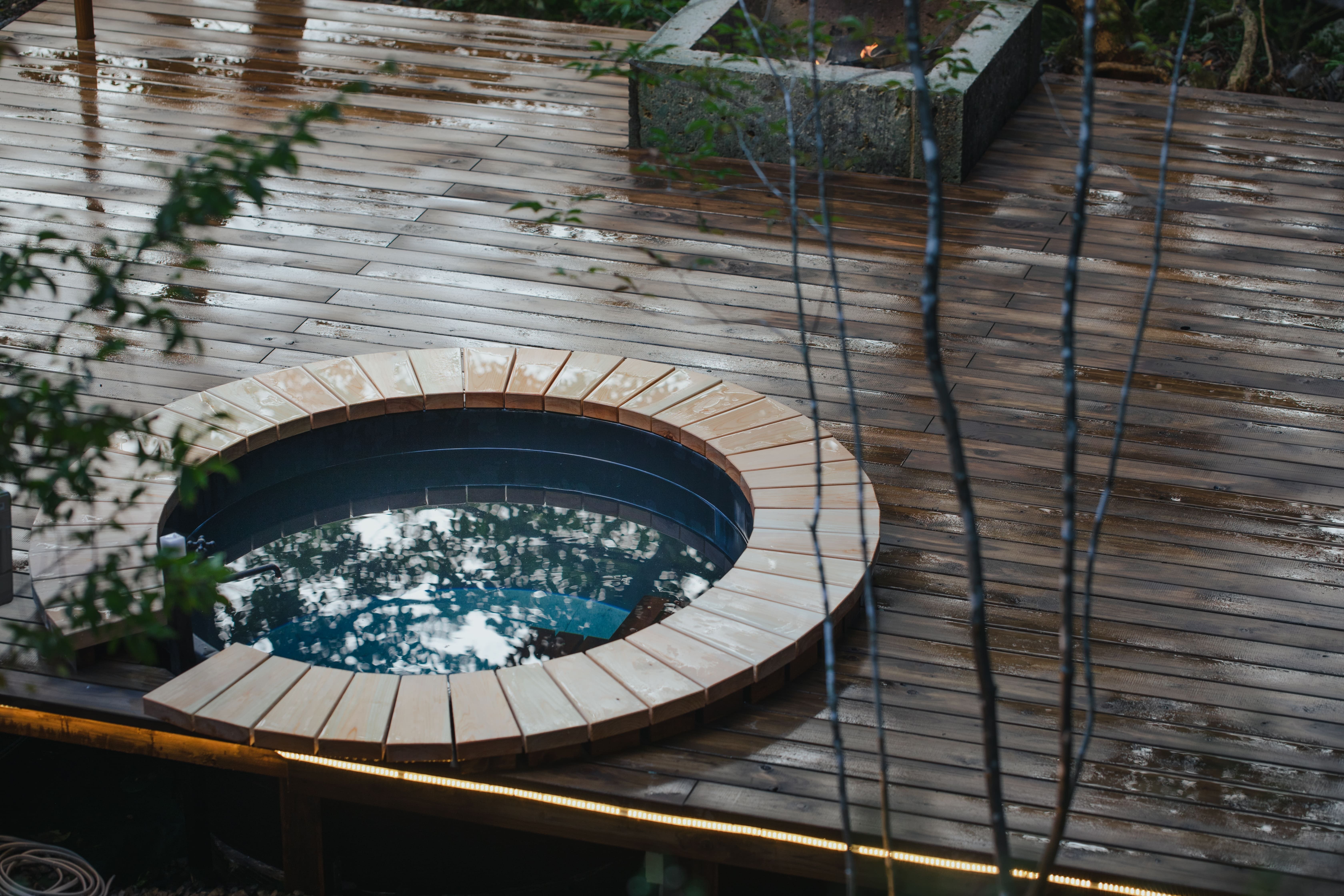 サウナから水風呂、外気浴ができるウッドデッキまで全てが貸切です。