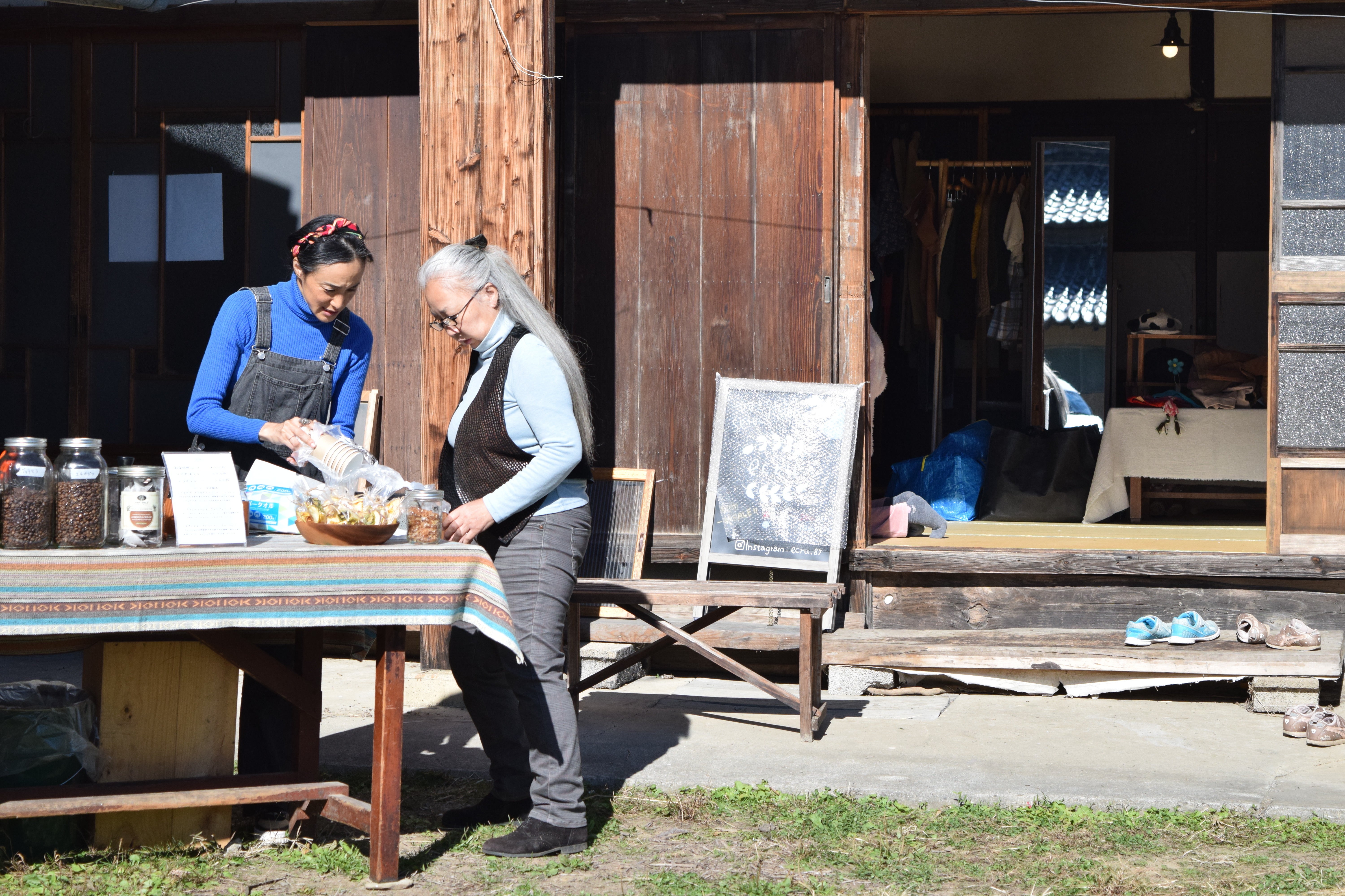 片付けと改修と並行して始めた小さなマーケットmaniché(まにしぇ)。初回、トイレも整備されていないような古民家まで出店にきてくれた古本屋さんたちにも、お客様たちにも、たくさんの勇気をもらいました。