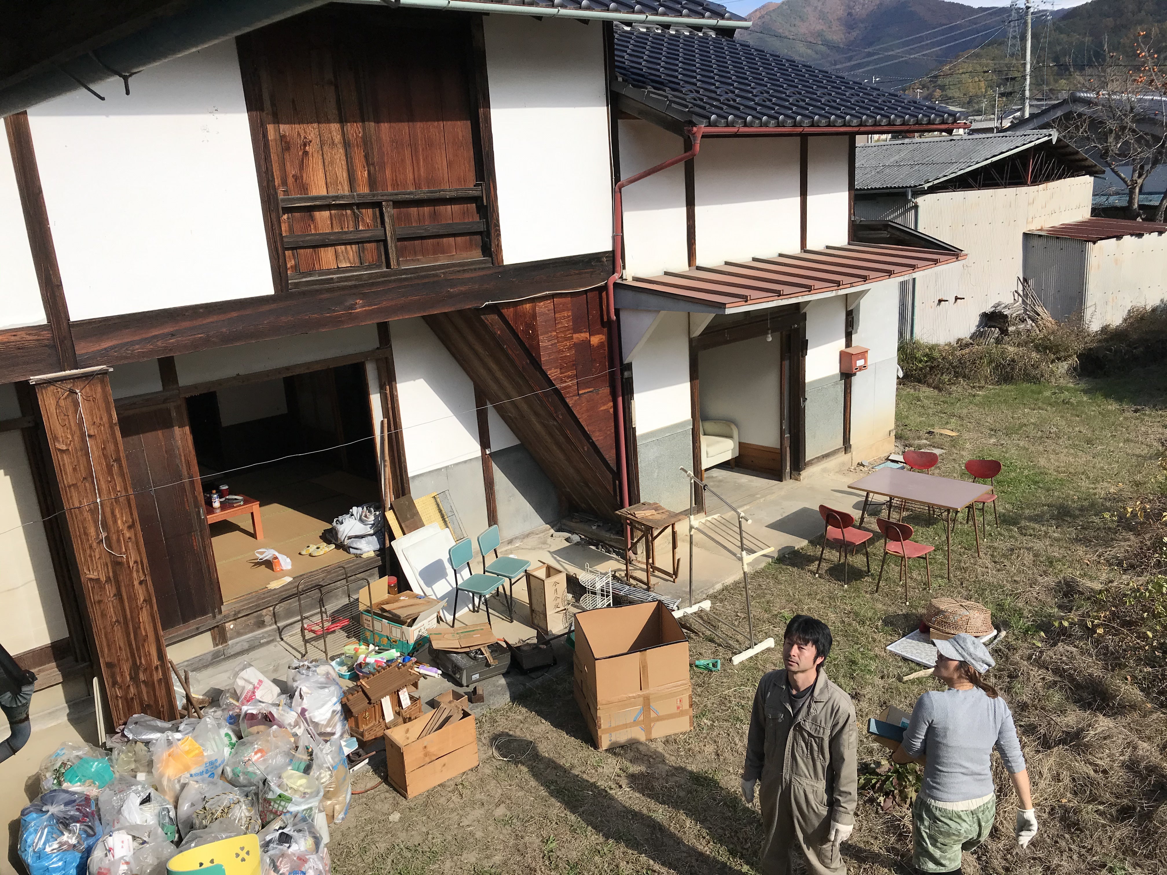 最初はとにかく片付け!何度もゴミの山と格闘しました一番最初にさんかくのいえに入ってくれたのは、贈り物と日用品のお店「ムスビ舎」のゆりさん。倉庫兼店舗として離れを活用してくれ、とても素敵な内装を整えてくれました。