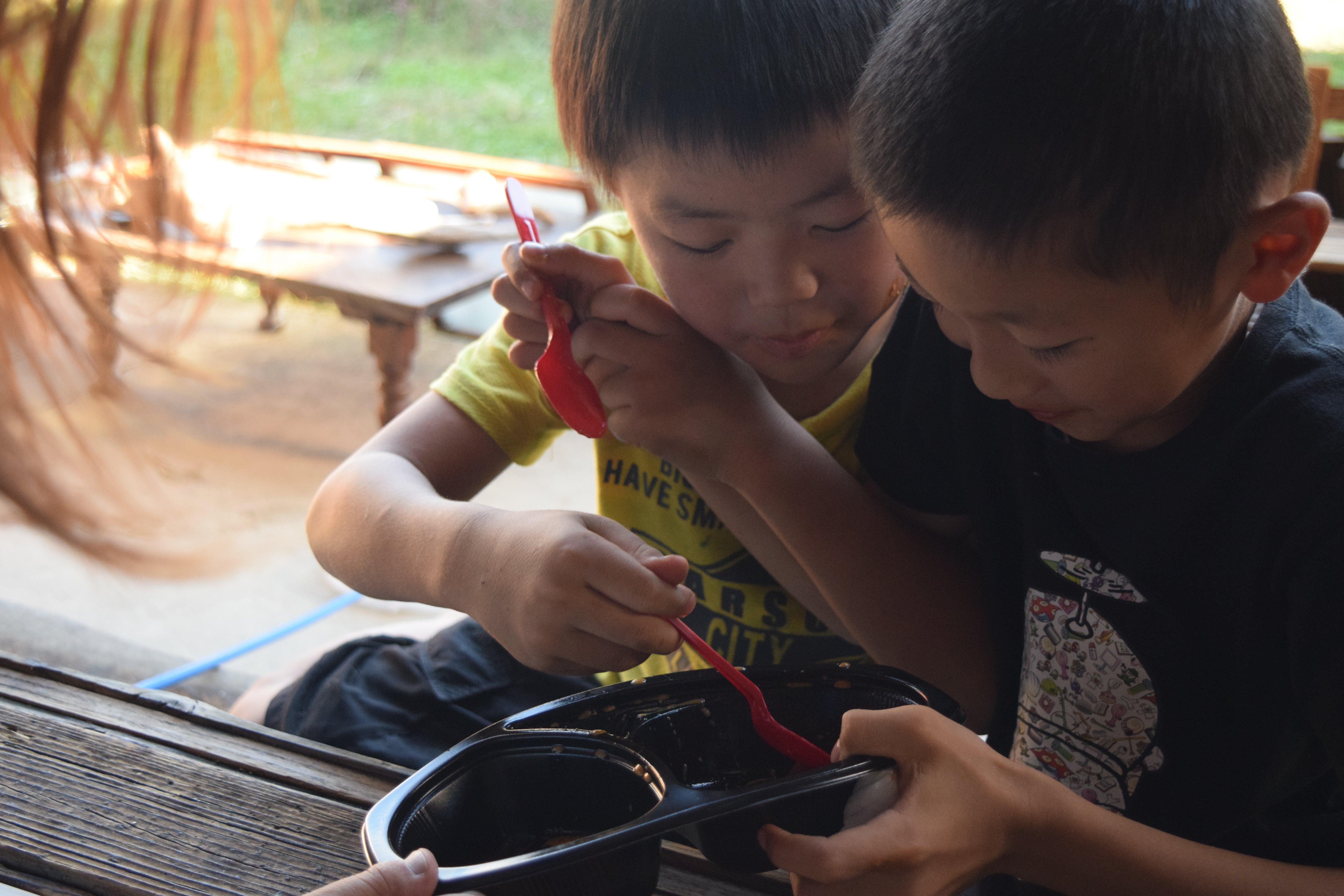 キッチンカーで出店してくださったカレー屋さんのカレーを食べる子ども達