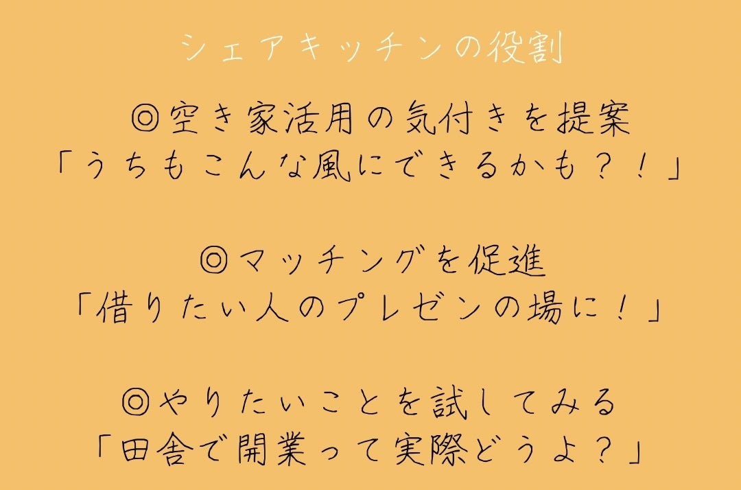 今、さんかくのいえに関わってくれる人たちのなかには、「引っ越してきて、いずれこの地域でお店を開きたい」と考えている人たちや、「場所があるなら食べてほしい食材がある」人がいます。
