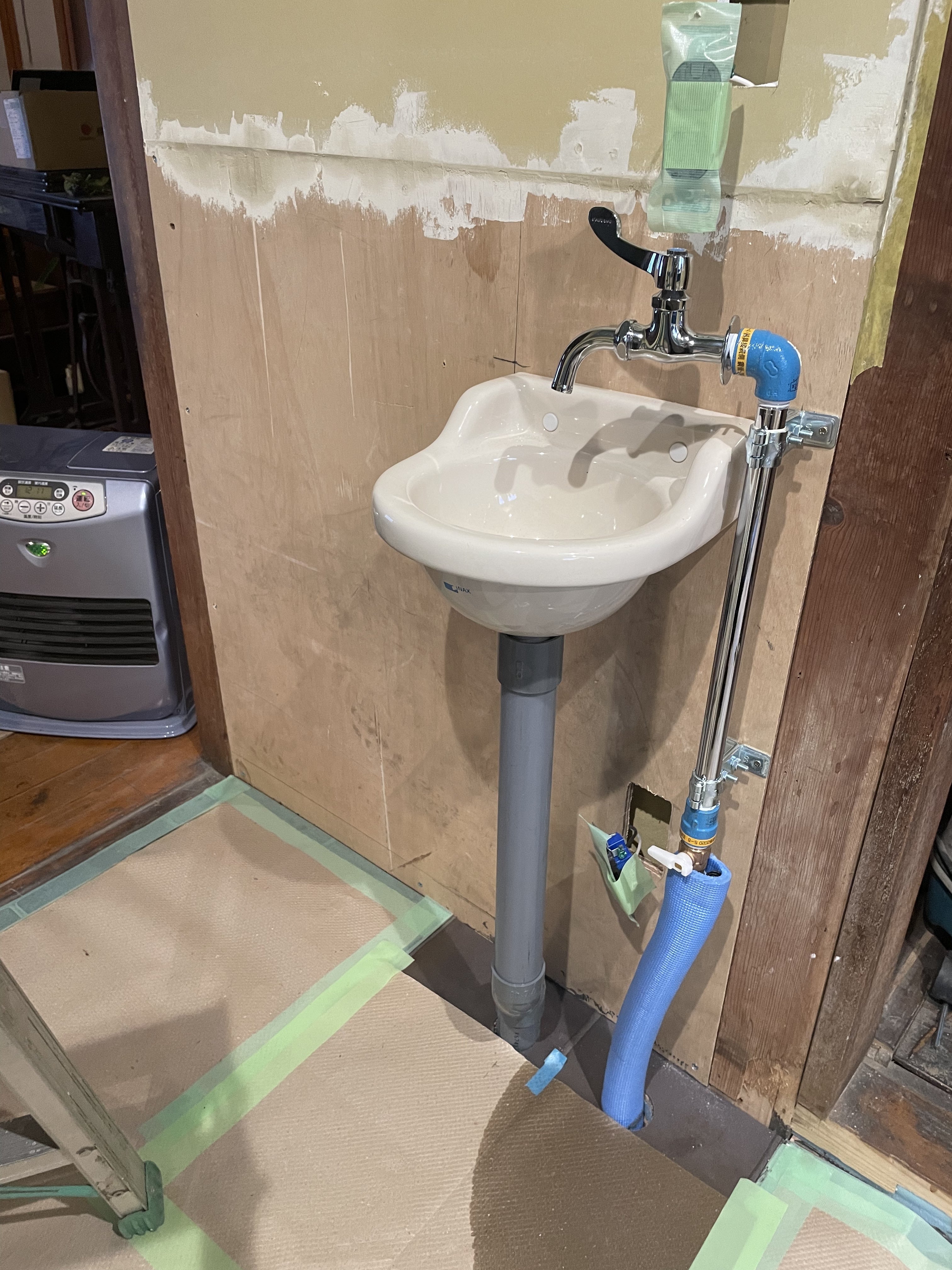 上の写真では作業のため養生してありますが、床のタイルもぶじに◎
