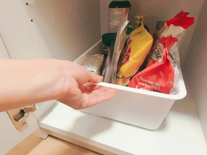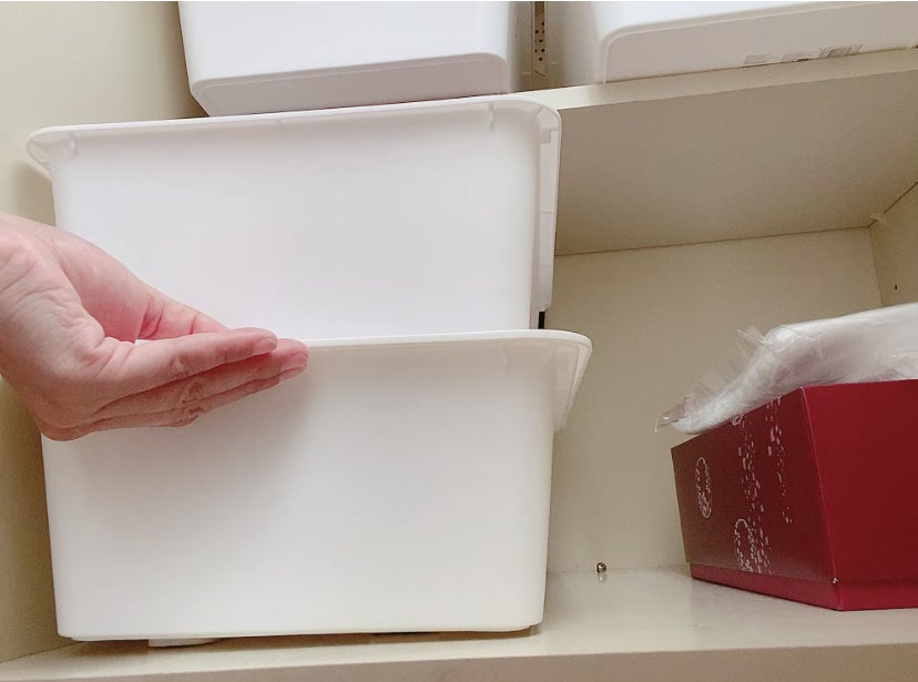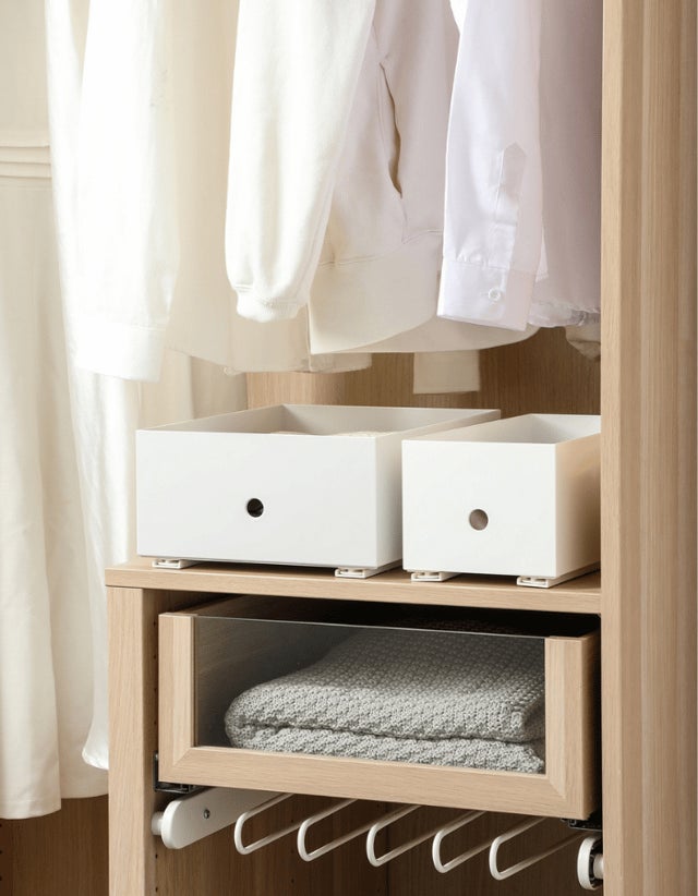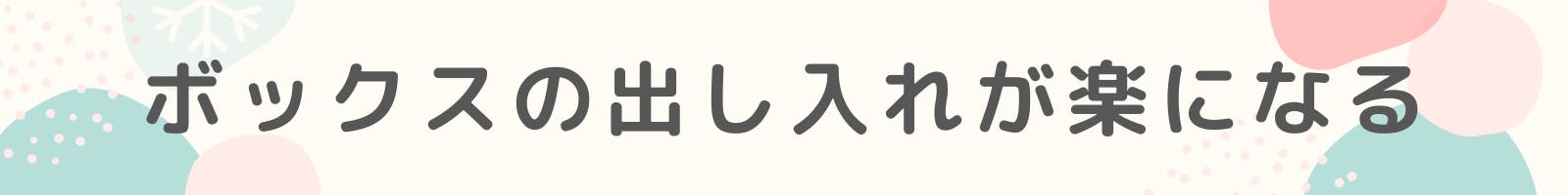 ボックスから奥の小物を取り出す時も、収納ボックスを持ち上げたり手で支えたりする手間が省けます。そして何より、ボックスを誤って手から落としてしまう心配もなくなります。