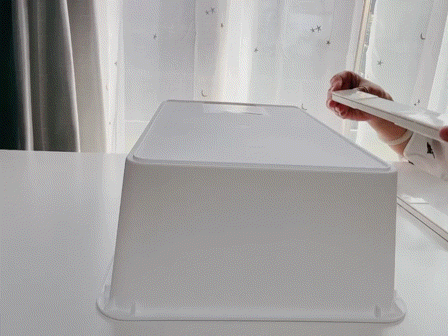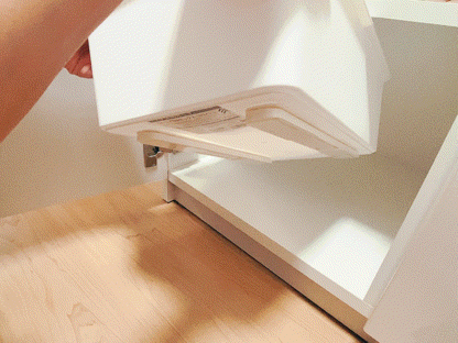 BOXスライダーはDIYが苦手な女性でも簡単に取り付けられます。両面の粘着シートを使うので、ドリルやドライバーは不使用。設置でせっかくの棚やカラーボックスの棚板を傷つけません。