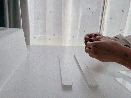 ④ 設置する場所が決まったら、底面の粘着シートのシールを剥がし貼り付ければ完成です。