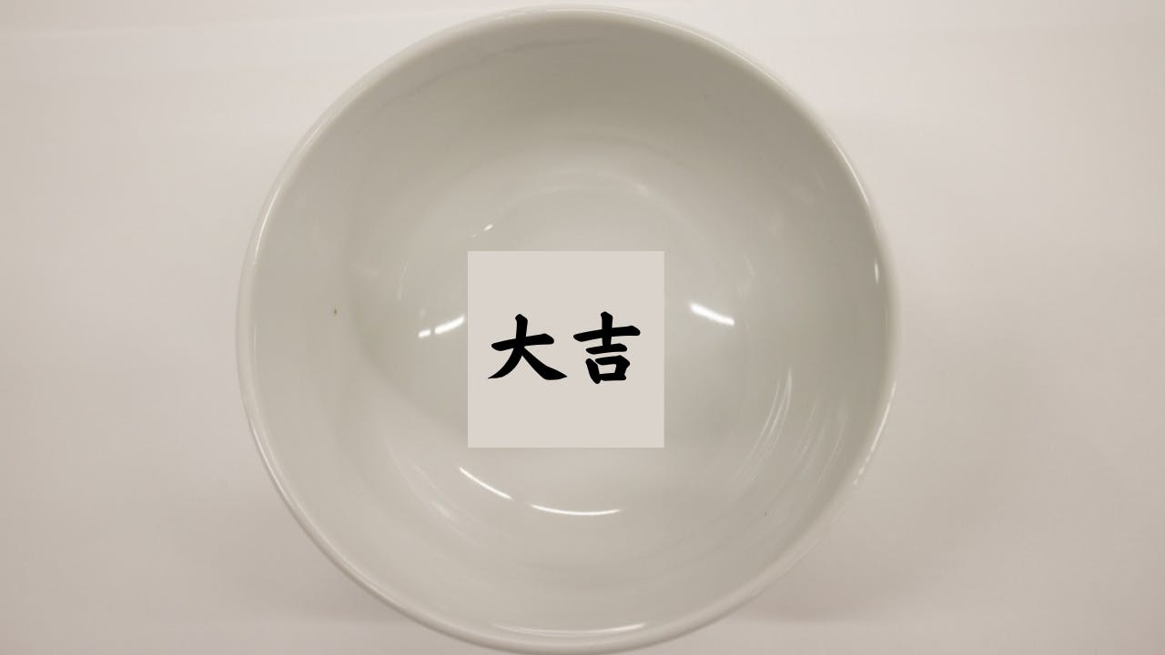 具体的には、お茶碗の内底面におみくじを印字することで、綺麗に全部食べるとその日の運勢が占える仕組みです。