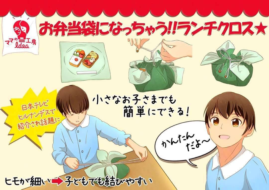 1.ランチクロスがお弁当袋になるから1枚で2役
