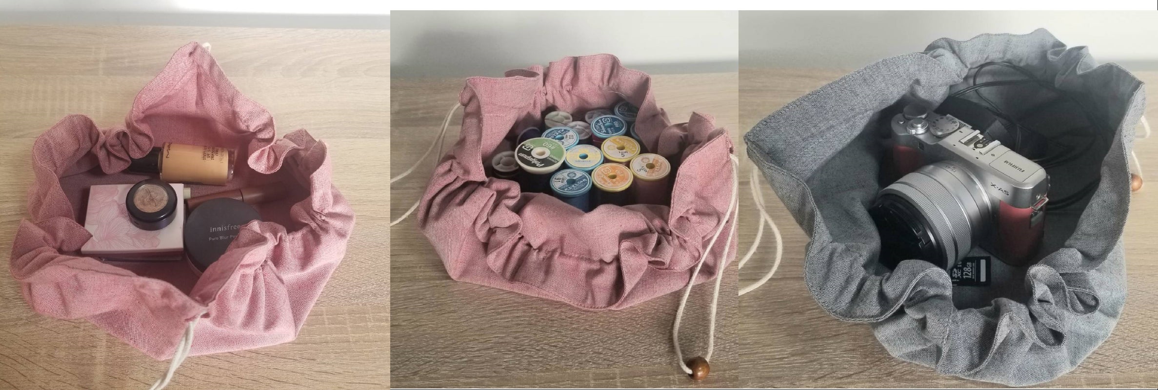 化粧ポーチとして 小物入として カメラをコード類と一緒に 等 開口部が広い袋が必要な方に 便利!