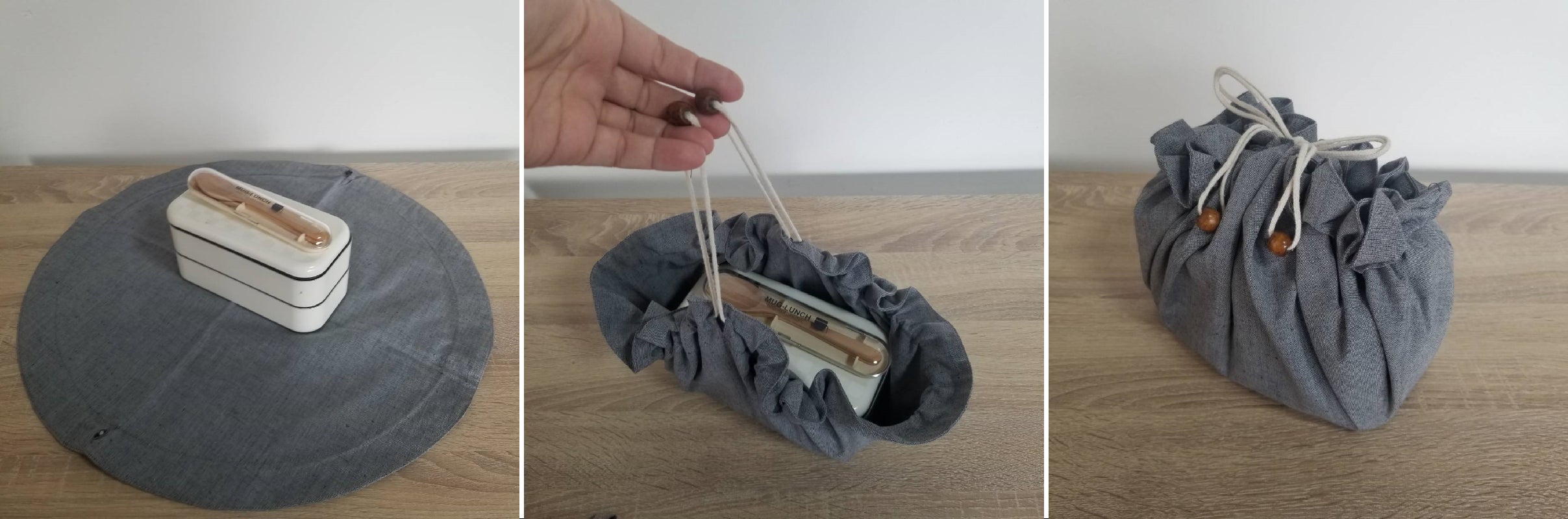 ●とっても簡単!お弁当袋になっちゃうランチクロス丸形シャンブレイの使い方