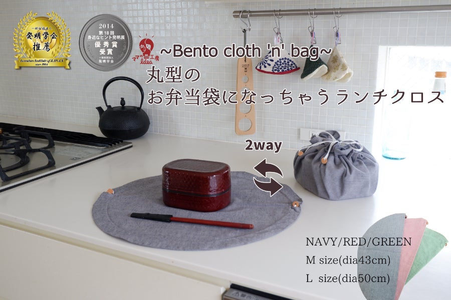 ママのアイディア工房株式会社の主力商品で一番人気の丸形「お弁当袋になっちゃう!!ランチクロス☆」。