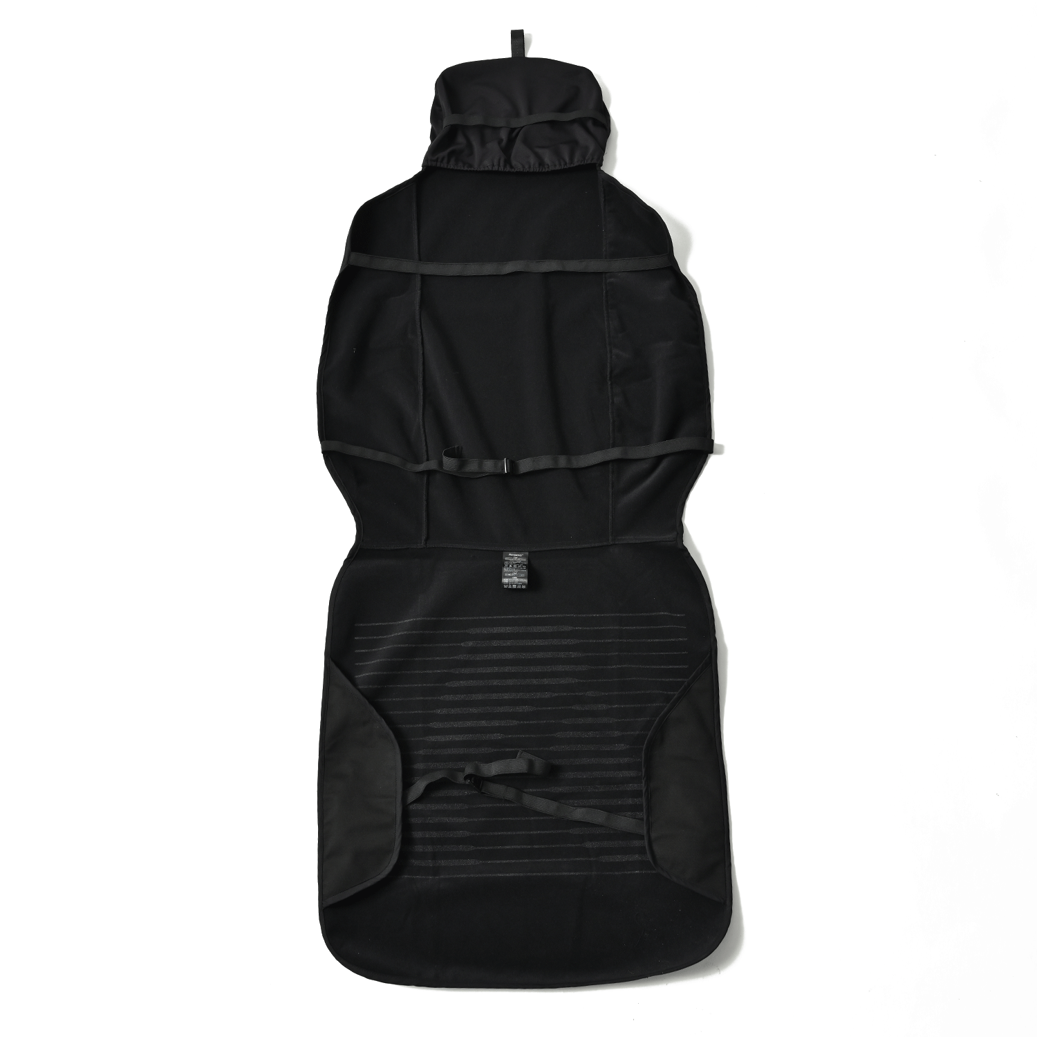 フロントシートカバーの背もたれ部は上下2本のバンドでしっかり固定。